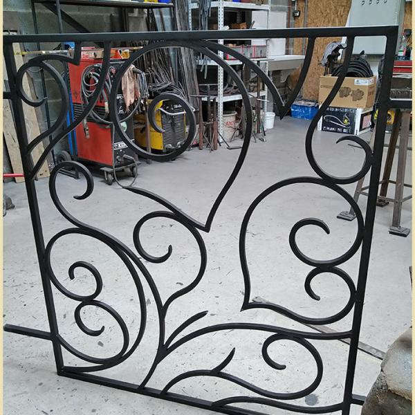 - Décor par volutes en fer plat de 20 x 8 mm
