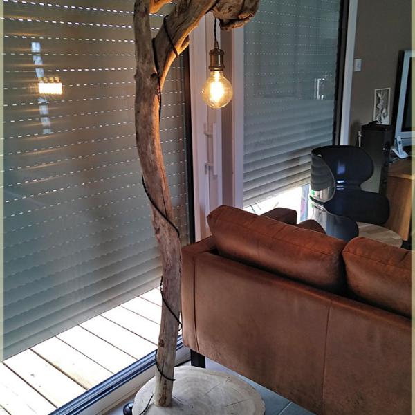 1) Travail du bois flotté, lampadaires, lustres, lampes d'appoint
