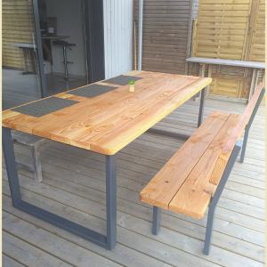 Table extérieure où l'on pourra être à 10 personnes, voire 12 en se serrant un peu.