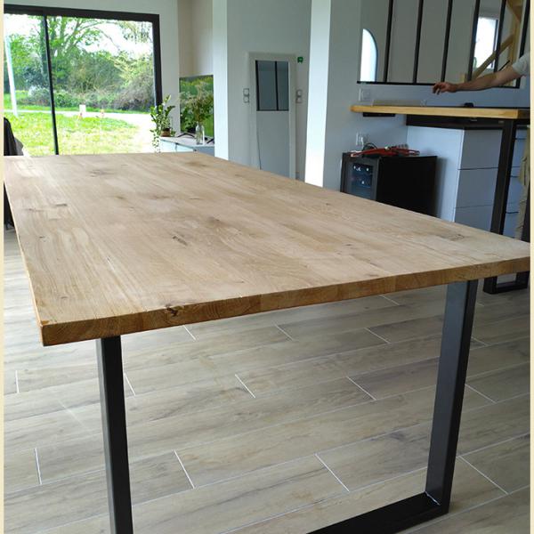 - Table avec piètement en tube de 70 x 30 mm avec traitement peinture époxy plus plateau en chêne de 2.50 x 1.10 x 35 mm