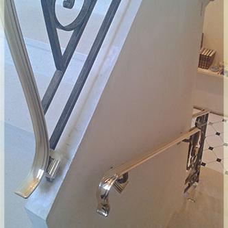 Supplément pour main courante en laiton poli : 193,00 € H.T. le M linéaire.