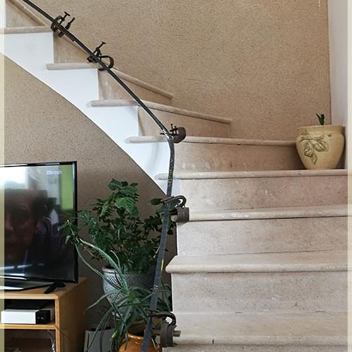 Ce modèle très léger convient à tout type d'escalier, le fait d'avoir choisi une pose sur limon diminue la hauteur de la rampe et est du plus belle effet.