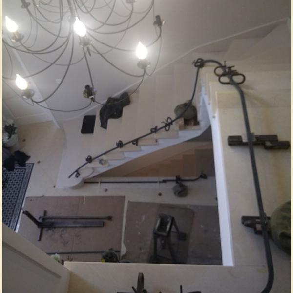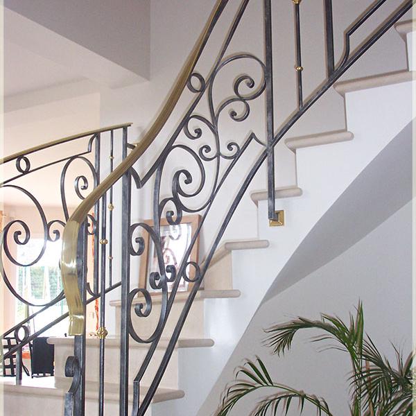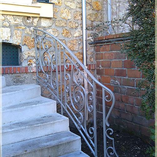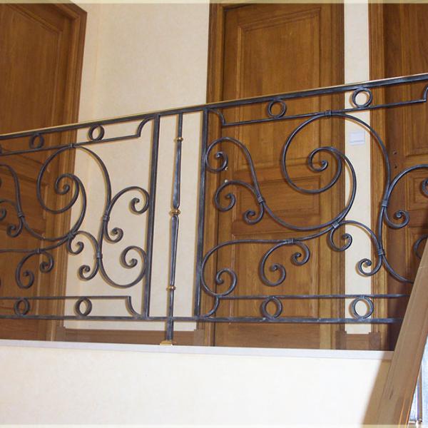 - rampe en fer forgé avec décor en volutes de 20 x 8 mm avec noyaux forgés à chaud