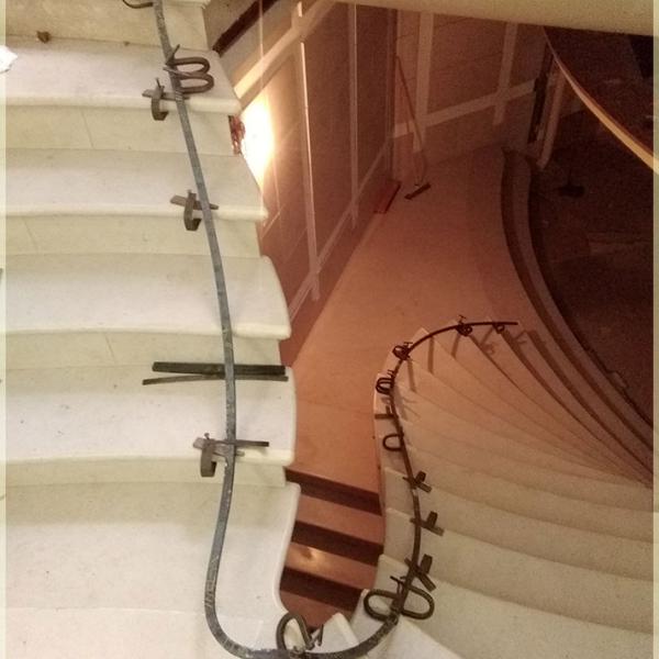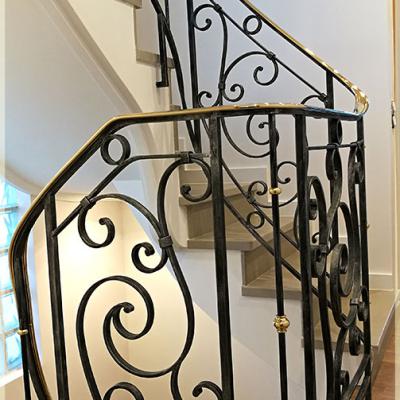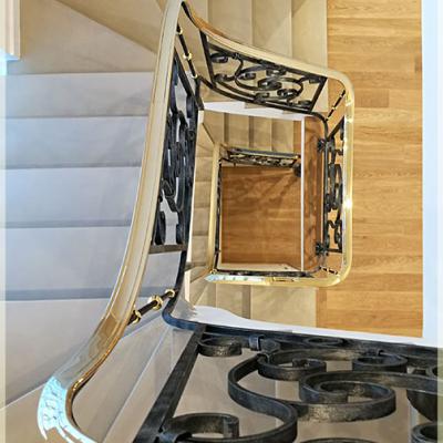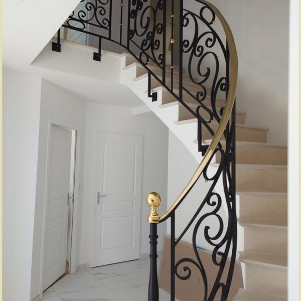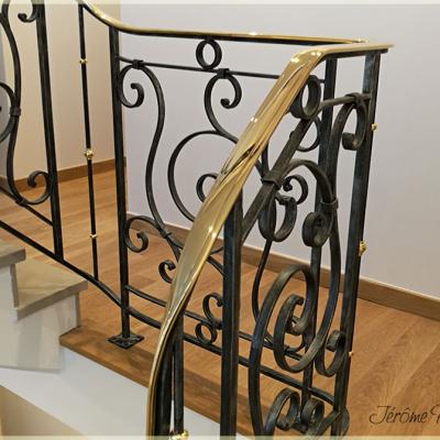 Ce modèle procure une douceur dans l'escalier grâce à sa courbe et à l'association du fer et du laiton.