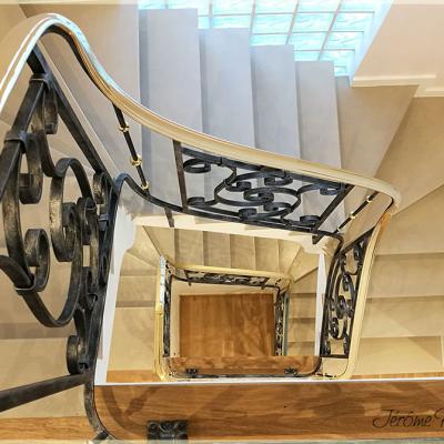 Cette rampe d'escalier peut être réalisée par Jérôme Renaire, RJ Ferronnerie, partout en France.