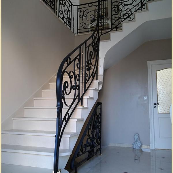 - rampe en fer forgé tout métal avec barreaux dans les virages