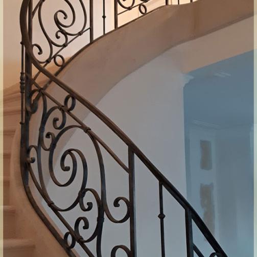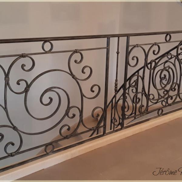 Cette rampe d'escalier peut être réalisée par Jérôme Renaire, RJ Ferronnerie, partout en France.