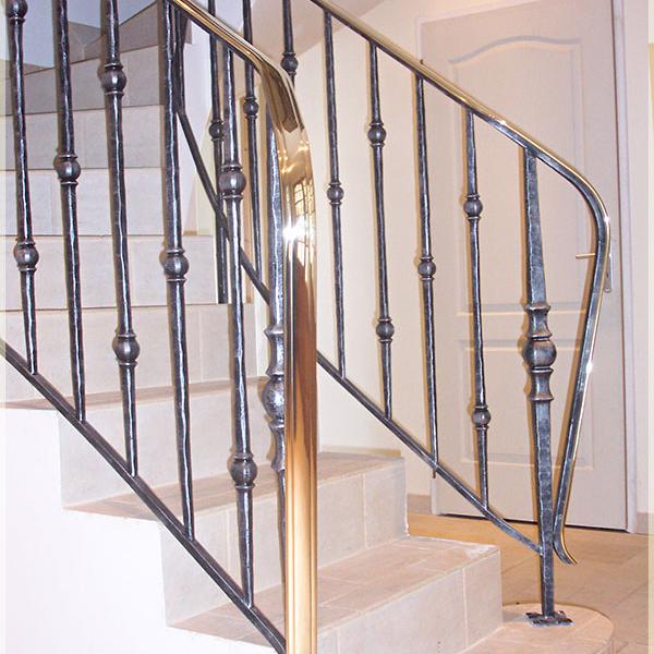Même modèle que celui à bagues en fonte mais avec des barreaux martelés à la forge, beaucoup moins répandu mais nos clients aiment l'originalité de ce modèle. Nous l'avons classé dans la catégorie des rampes d'escalier style moyen âge.
