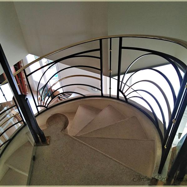 Cette rampe d'escalier peut être réalisée par Jérôme Renaire, RJ Ferronnerie, partout en France.