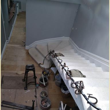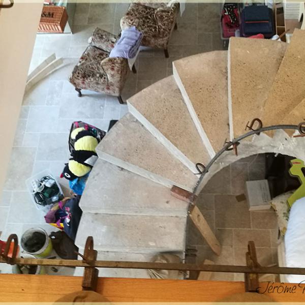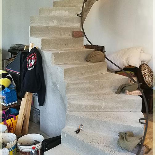 Rampe sur escalier en voute sarrasine revêtu de pierre :