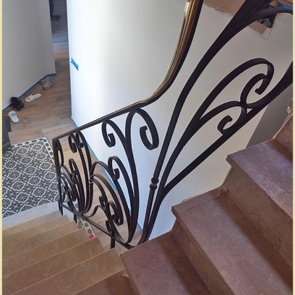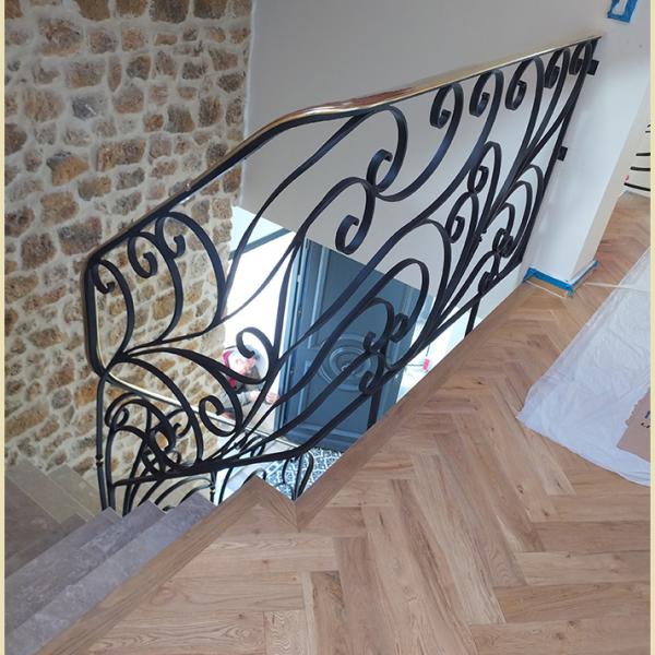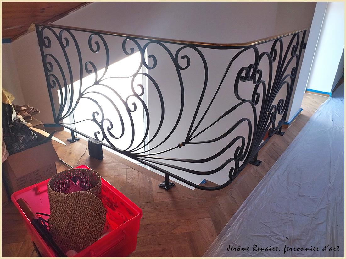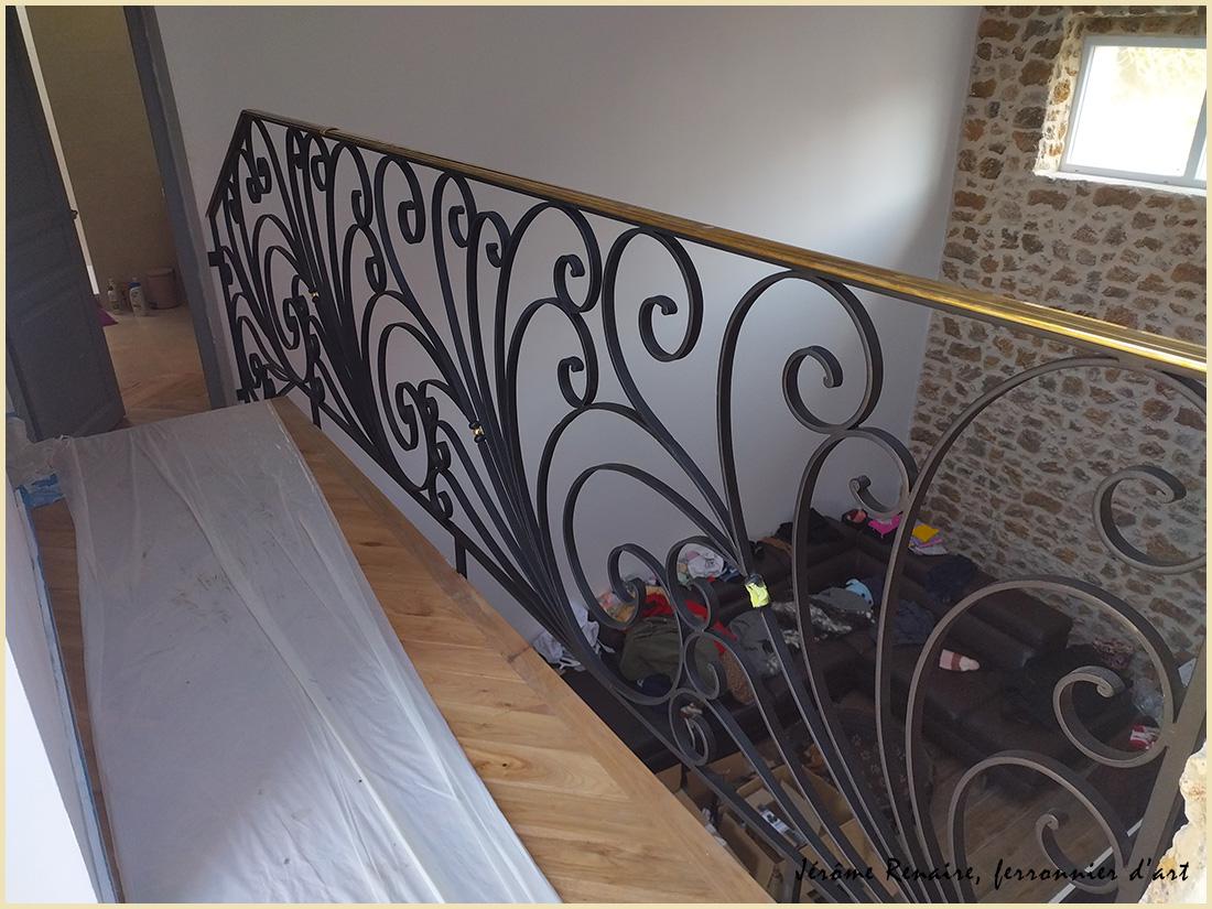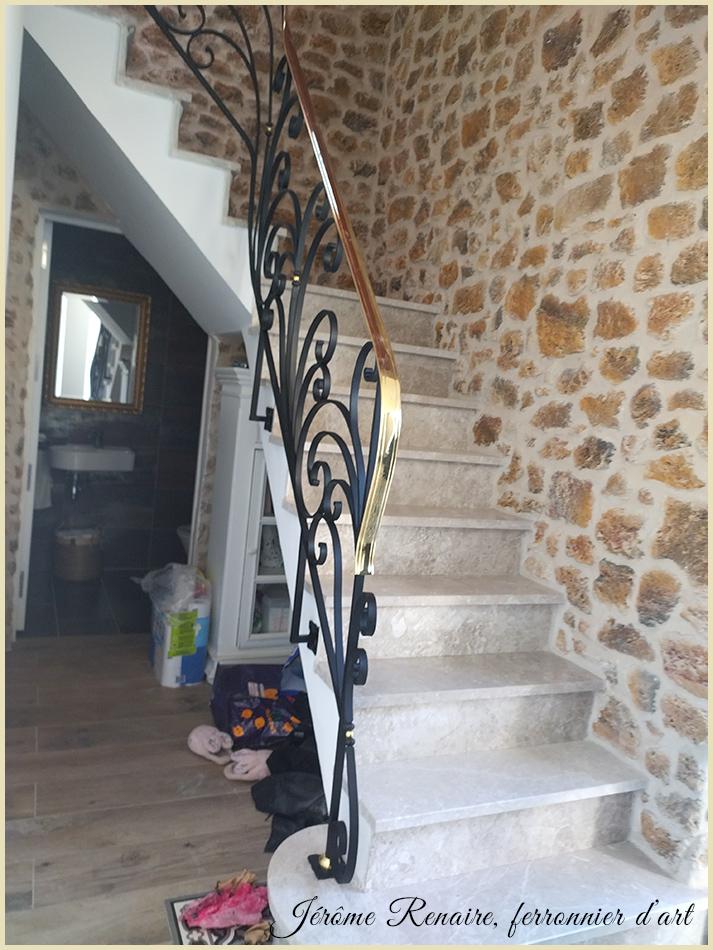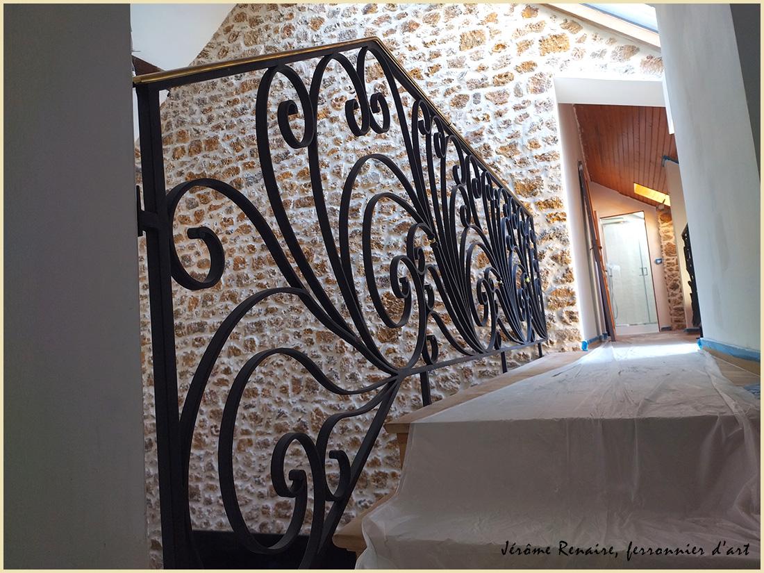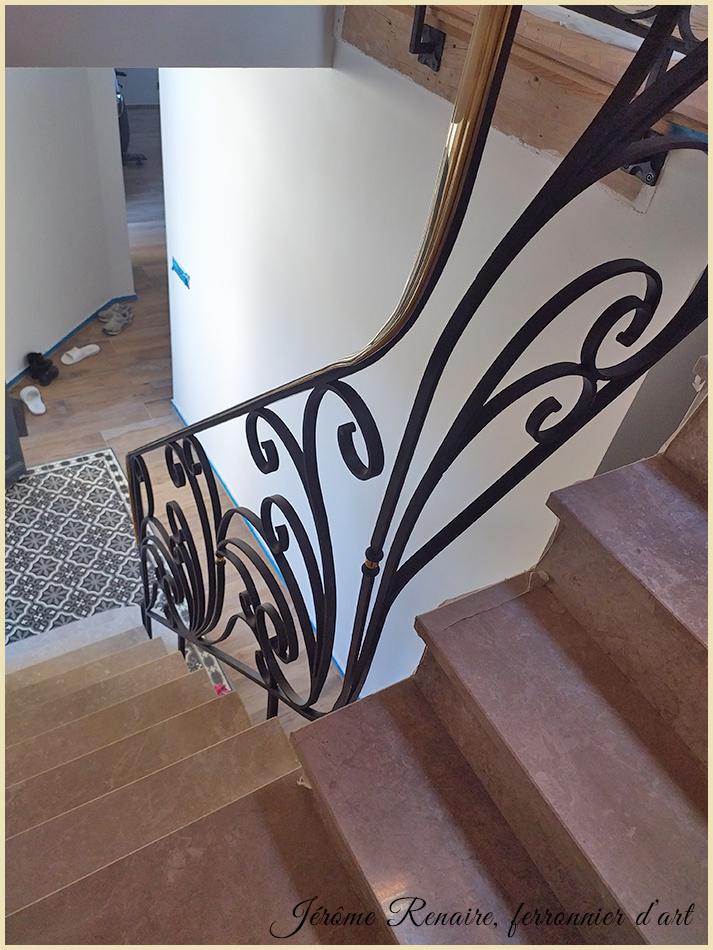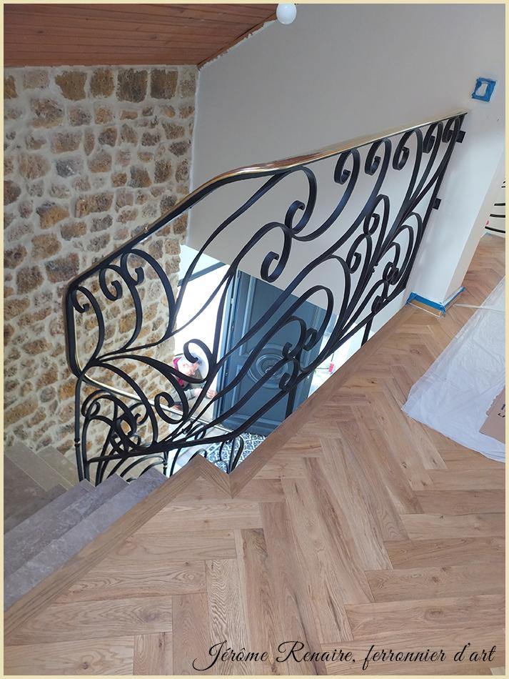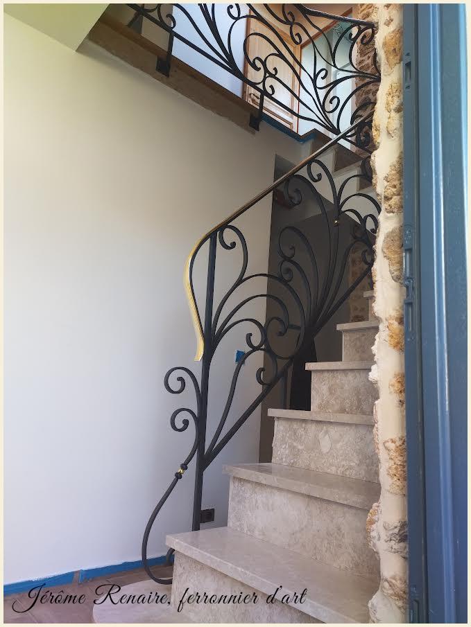 Cette rampe d'escalier assez récente peut être réalisée par Jérôme Renaire, RJ Ferronnerie, partout en France.