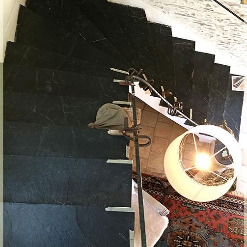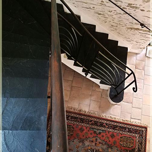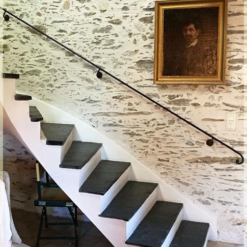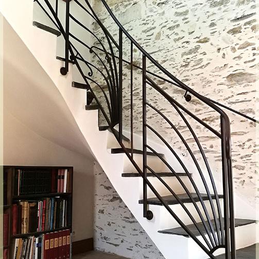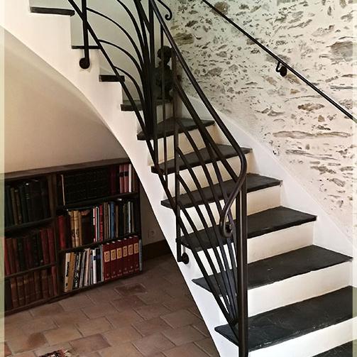 Rampe sur escalier en voûte sarrazine avec marches en ardoise (modèle 16) :