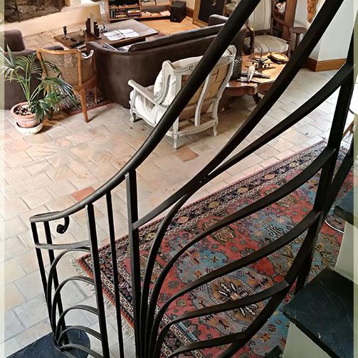 Cette rampe d'escalier destinée à tout type de demeure peut être réalisée par Jérôme Renaire, RJ Ferronnerie, partout en France.