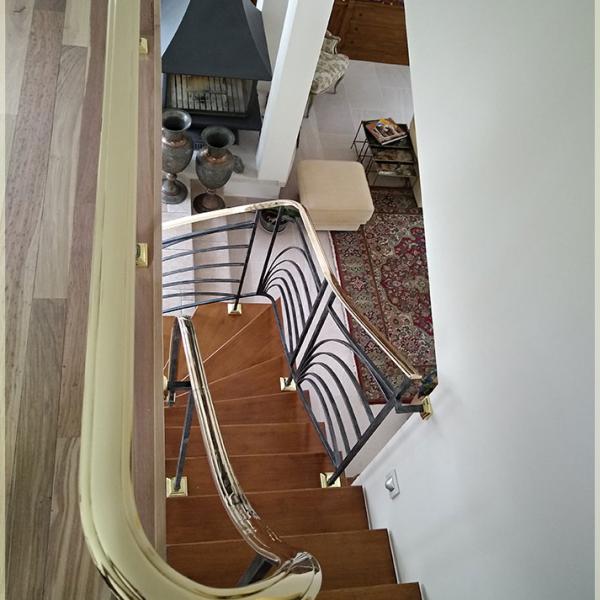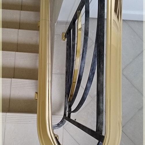 Supplément pour main courante en laiton poli : 193,00 € H.T. le M linéaire.