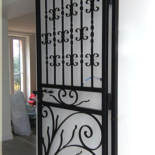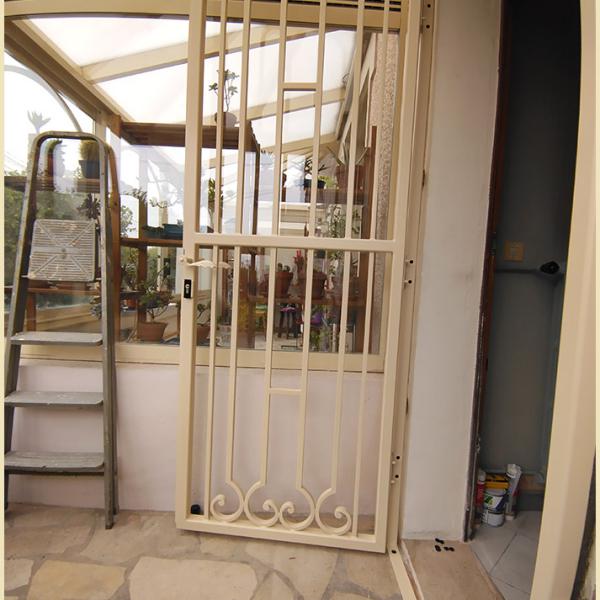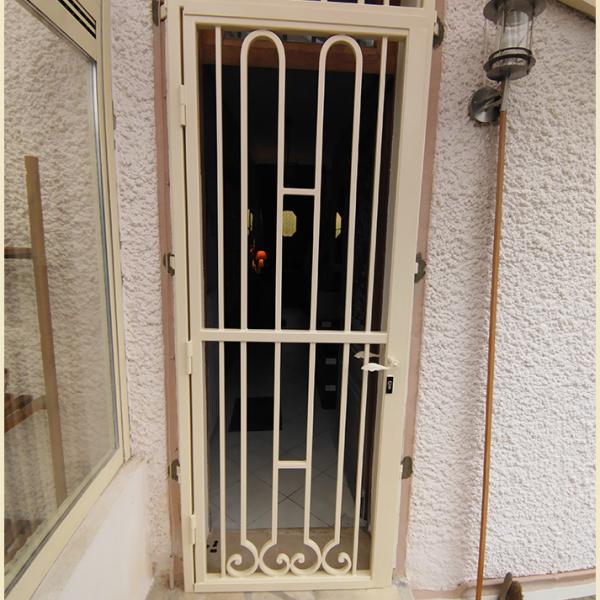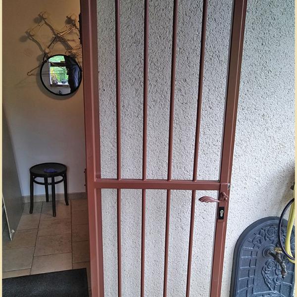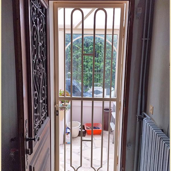 L'avantage d'une grille de défense de ce type est que l'été la porte d'entrée peut rester ouverte et pouvoir profiter d'un courant d'air frais dans la maison.