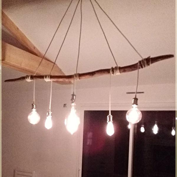 1) Travail du bois flotté, lampadaires, lustres, lampes d'appoint