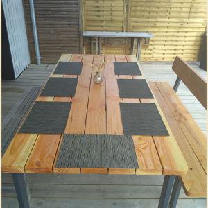Table extérieure où l'on pourra être à 10 personnes, voire 12 en se serrant un peu.