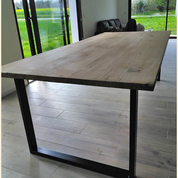 - Table avec piètement en tube de 70 x 30 mm avec traitement peinture époxy plus plateau en chêne de 2.50 x 1.10 x 35 mm