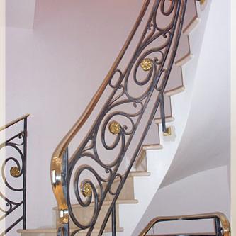 Supplément pour main courante en laiton poli : 193,00 € H.T. le M linéaire.