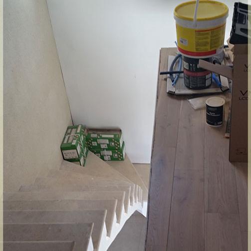Pour une rampe d'un étage (15 marches ) 1/4 tournant avec retour palier pour un total de 5 M linéaires environ