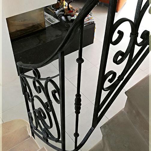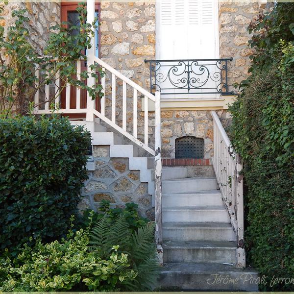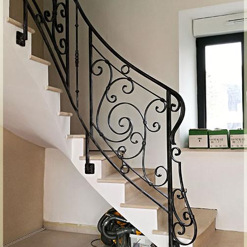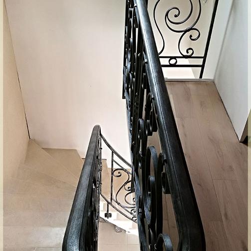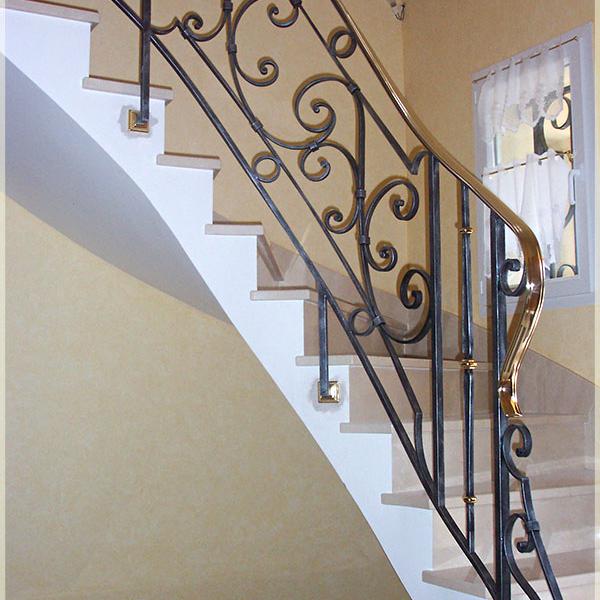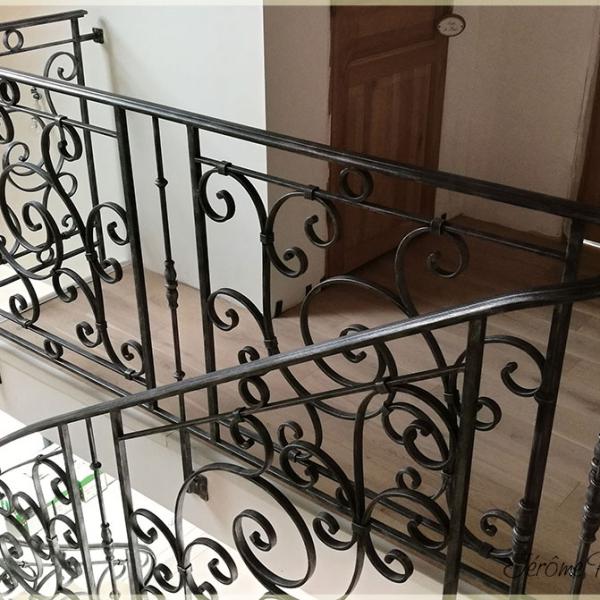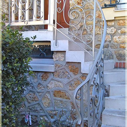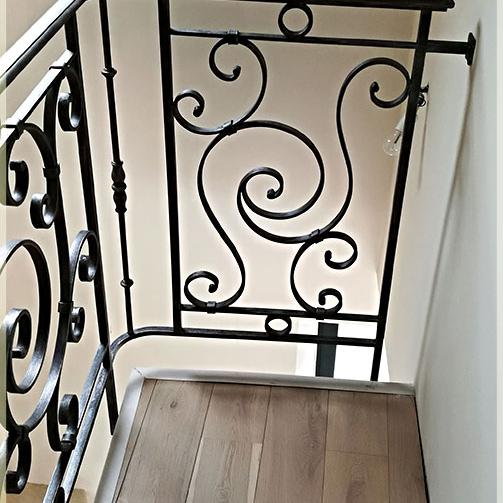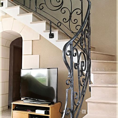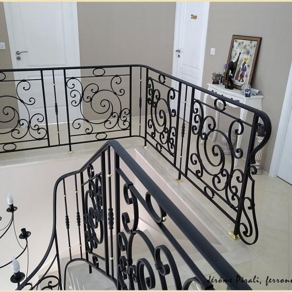- rampe en fer forgé avec décor en volutes de 20 x 8 mm avec noyaux forgés à chaud