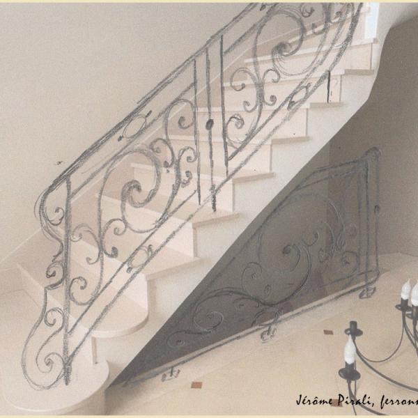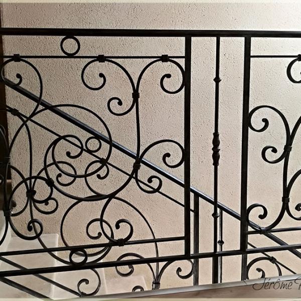 Cette rampe d'escalier peut être réalisée par Jérôme Renaire, RJ Ferronnerie, partout en France.