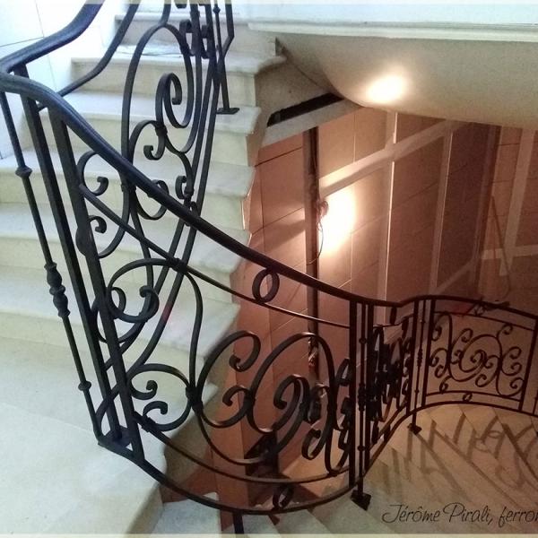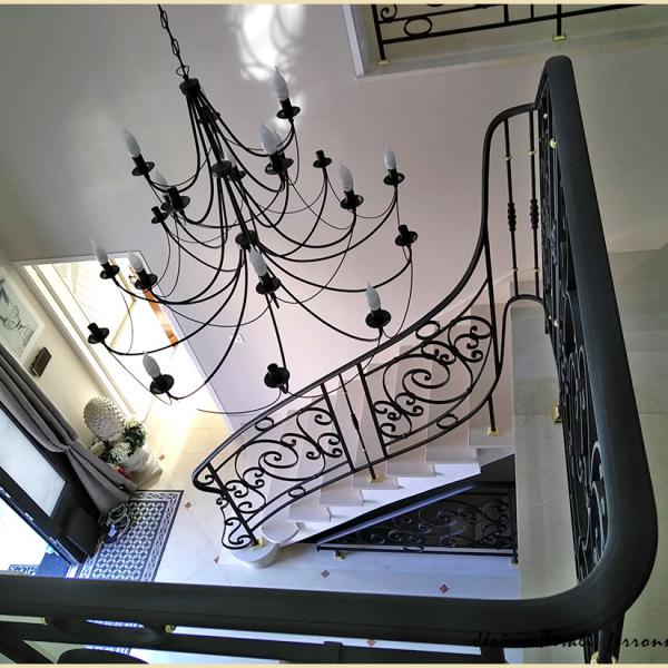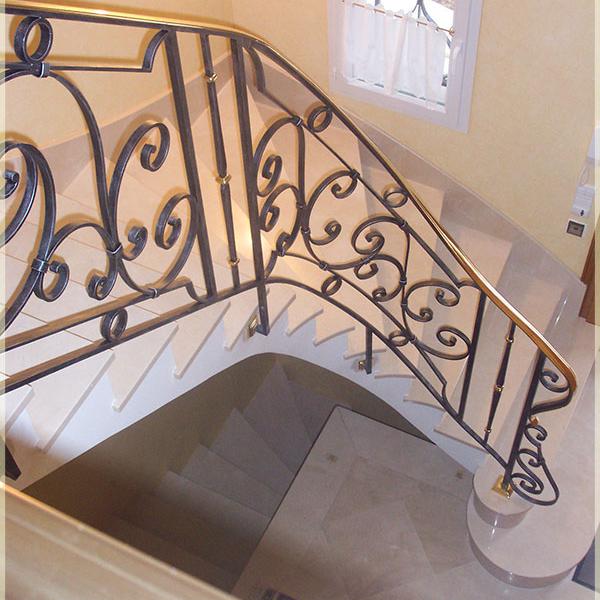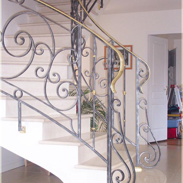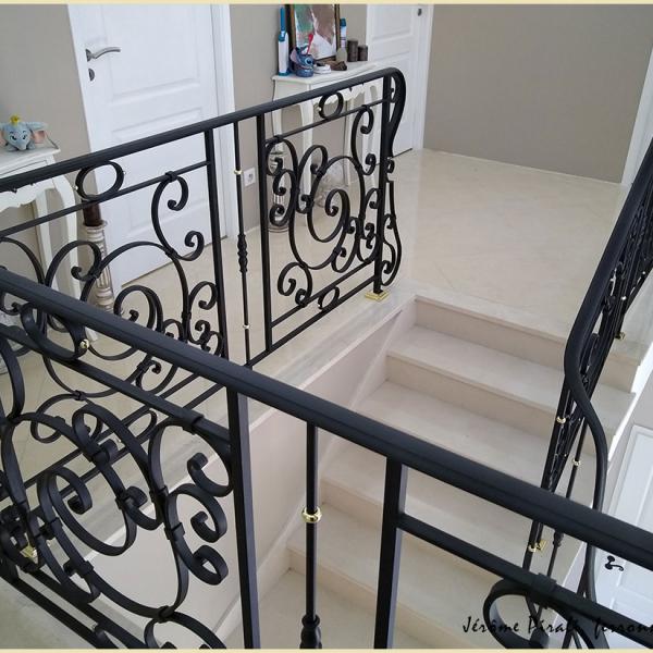 - rampe en fer forgé tout métal avec barreaux dans les virages