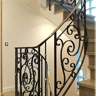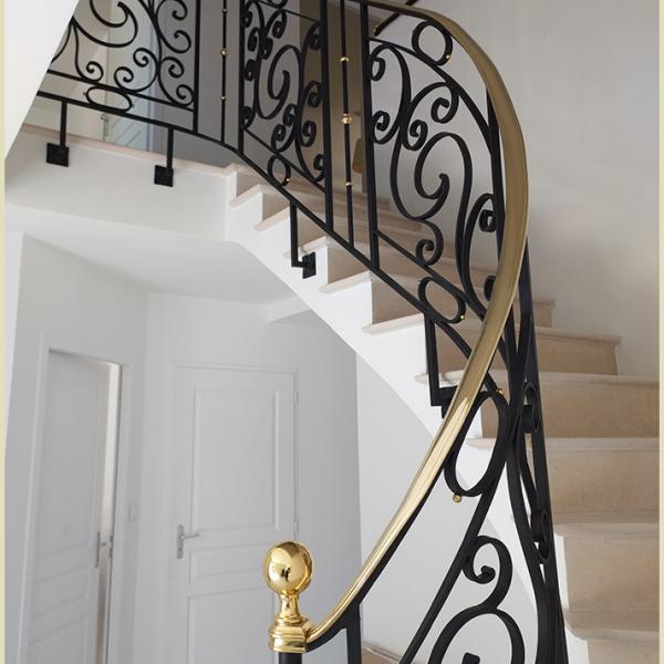 Ce modèle procure une douceur dans l'escalier grâce à sa courbe et à l'association du fer et du laiton.