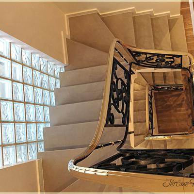 Ce modèle très apprécié des clients, très léger sans être trop rustique, il donne à l'escalier une autre dimension en soulignent toutes les formes et les virages du sous-sol au 3ème étage.