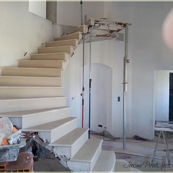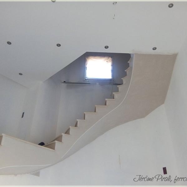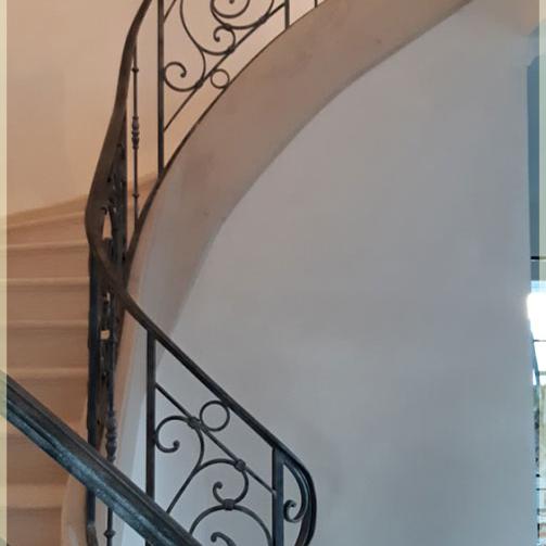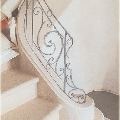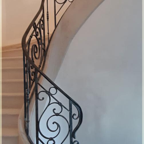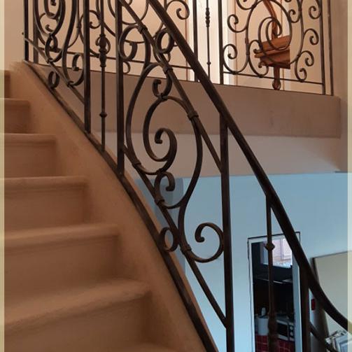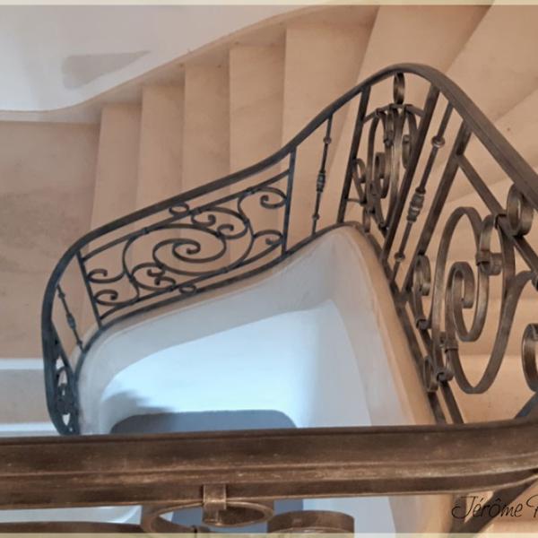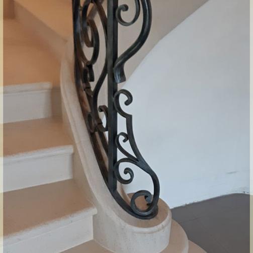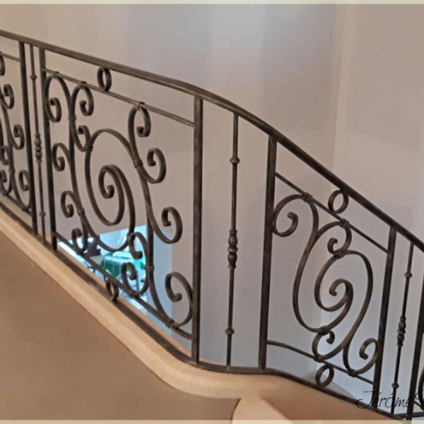 Cette rampe d'escalier peut être réalisée par Jérôme Renaire, RJ Ferronnerie, partout en France.