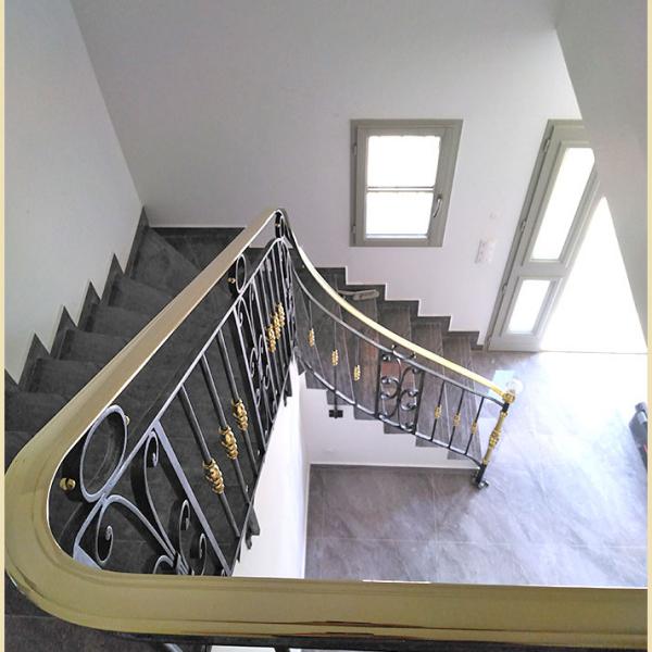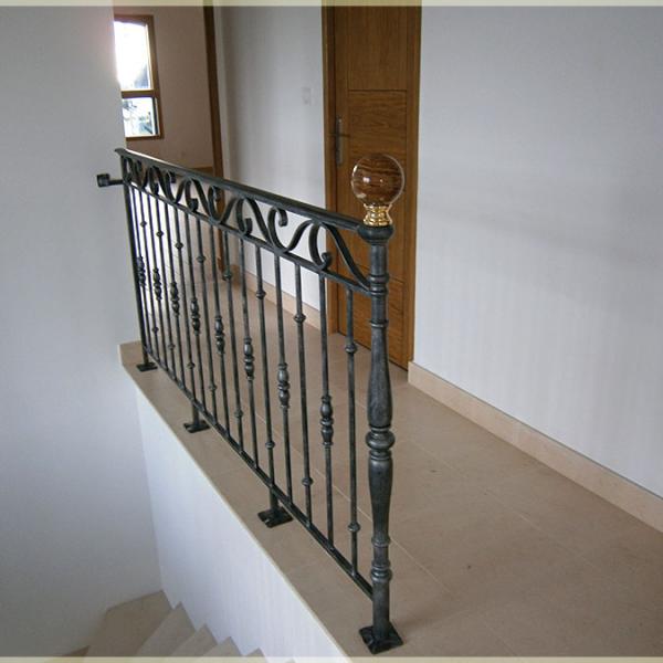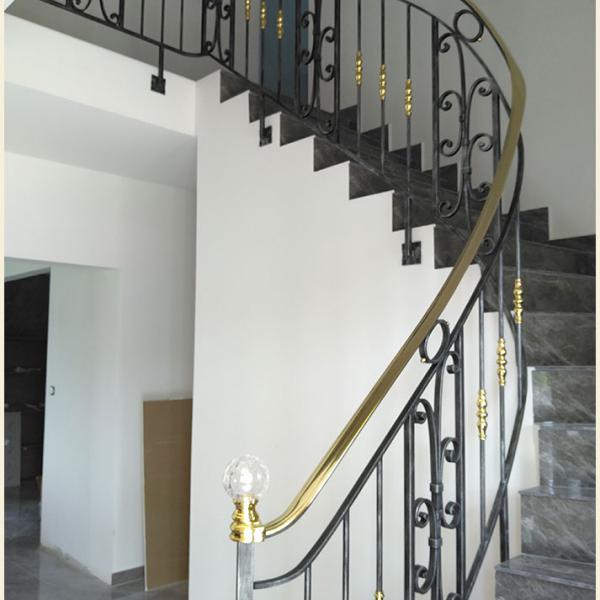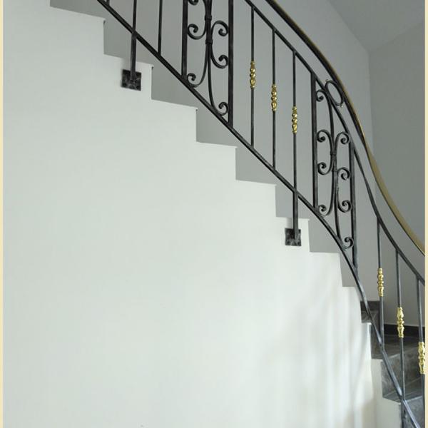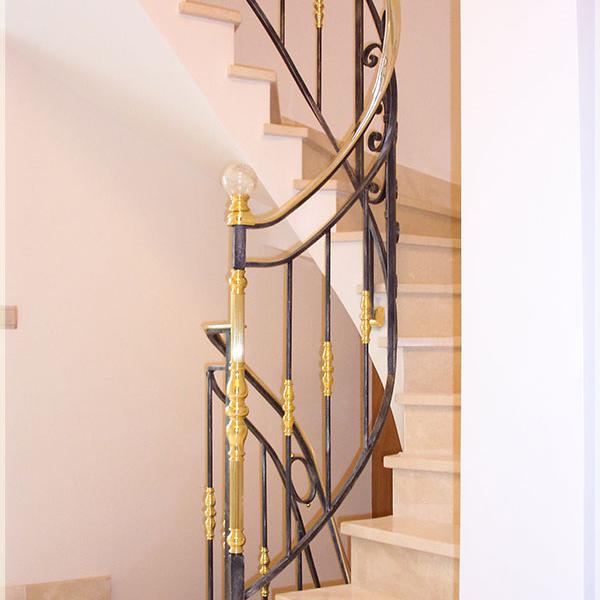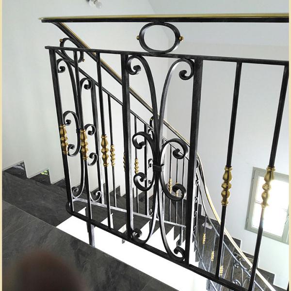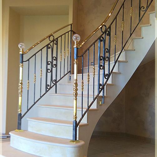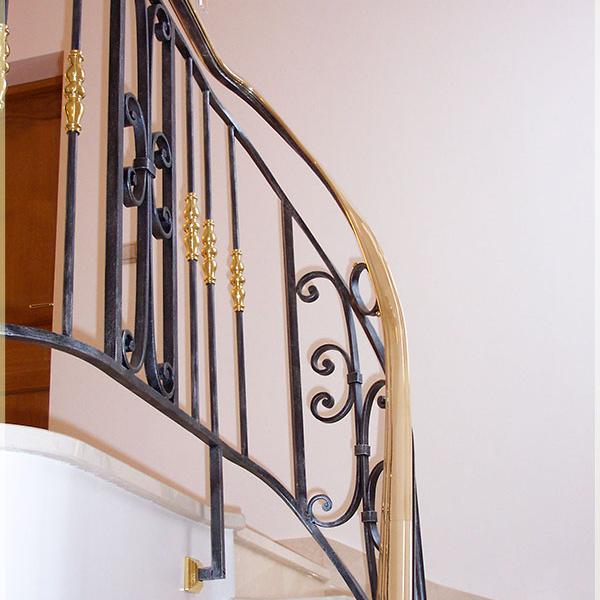 - Rampe à barreaux en fer rond de 14 mm avec bagues en laiton poli et vernis