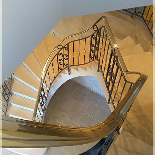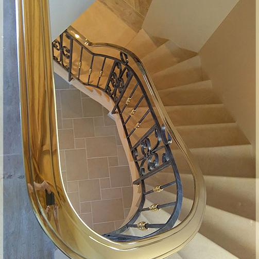 Supplément pour main courante en laiton poli : 193,00 € H.T. le M linéaire.