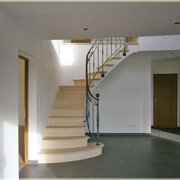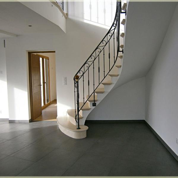 Sur cet escalier assez monumental tout en pierre avec son limon, la rampe vient coiffer à merveille l'ensemble et donne envie de monter voir se qui se passe à l'étage.