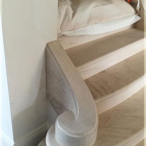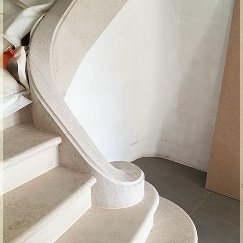 Rampe sur escalier en pierre avec limon pierre (modèle 06) :
