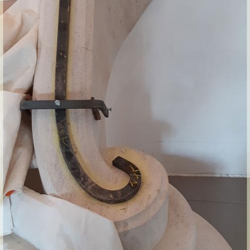 - Motifs par volutes en fer plat de 20 x 8 mm avec noyaux forgés