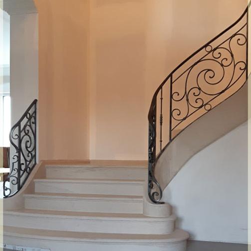 Prix H.T. à partir de 650,00 € H.T. le M linéaire avec main courante en fer.