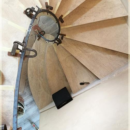 Pour une rampe d'un étage (15 marches ) 1/4 tournant avec retour palier pour un total de 5 M linéaires environ
