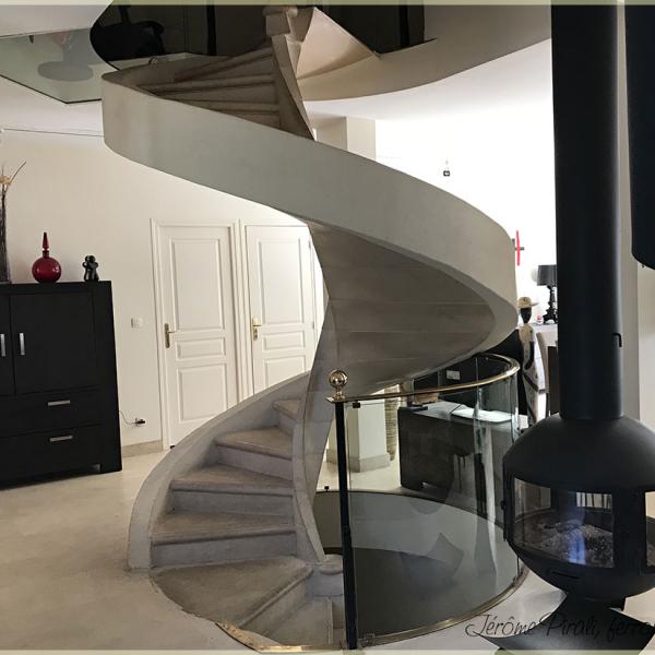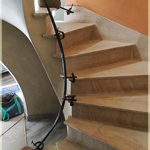 Rampe sur escalier en voute sarrasine revêtu de pierre (modèle 14) :