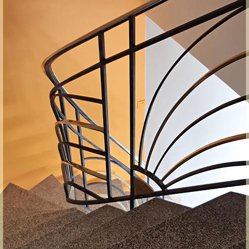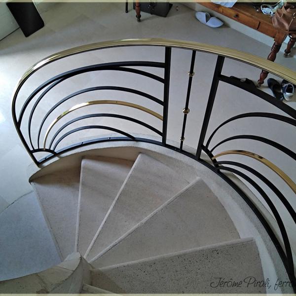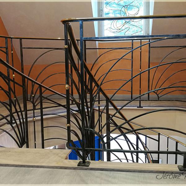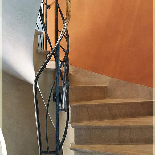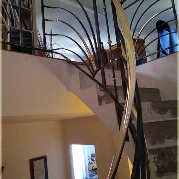 Cette rampe d'escalier peut être réalisée par Jérôme Renaire, RJ Ferronnerie, partout en France.