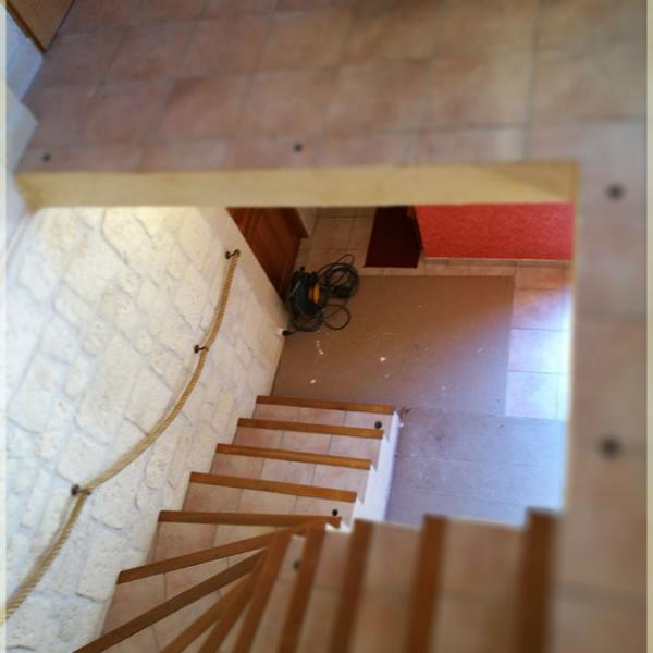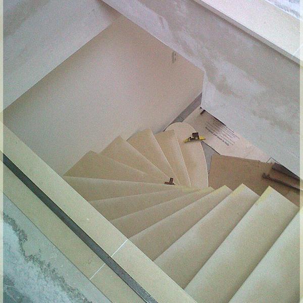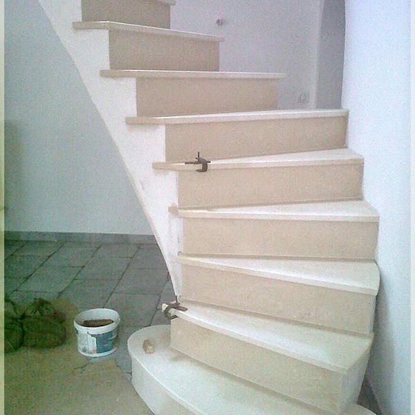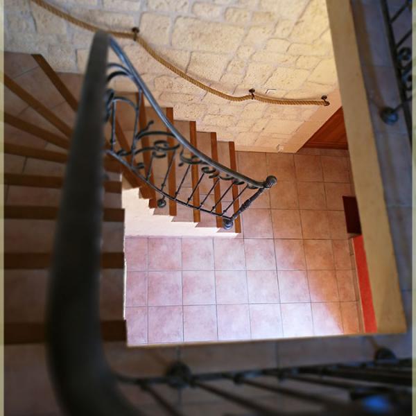 Rampe sur escalier en voute sarrasine revêtu de pierre :