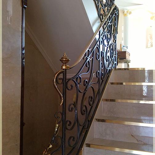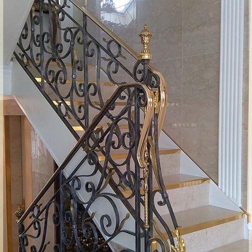 Ce modèle reste dans le style classique voir Louis XV ou Louis XVI, il est composé de volutes amples et décoratives que nos clients sollicitent souvent sur des escaliers en pierre. Ce style de rampe classique en fer forgé reste d'actualité et à toujours du succès auprès de nos clients.