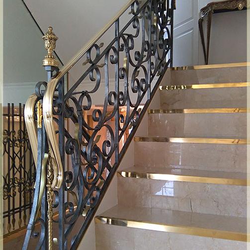 Supplément pour main courante en laiton poli : 193,00 € H.T. le M linéaire.