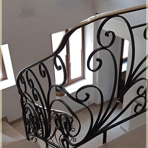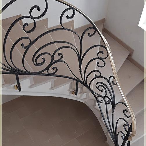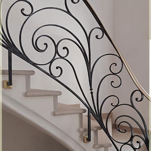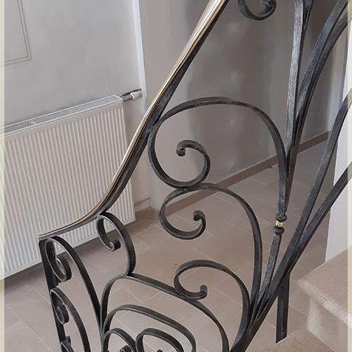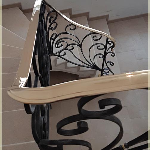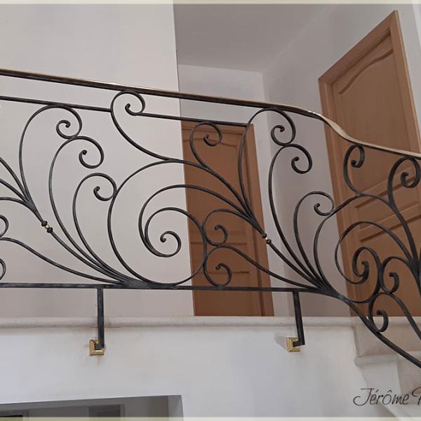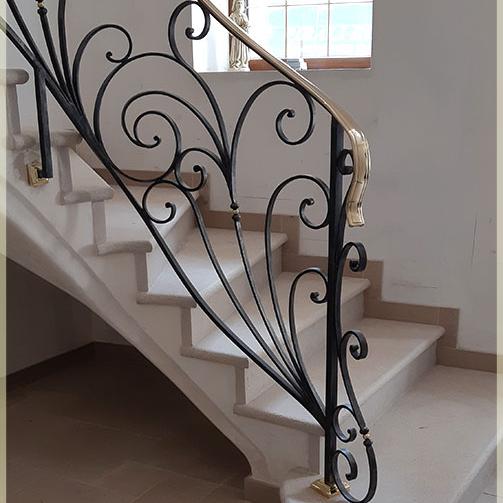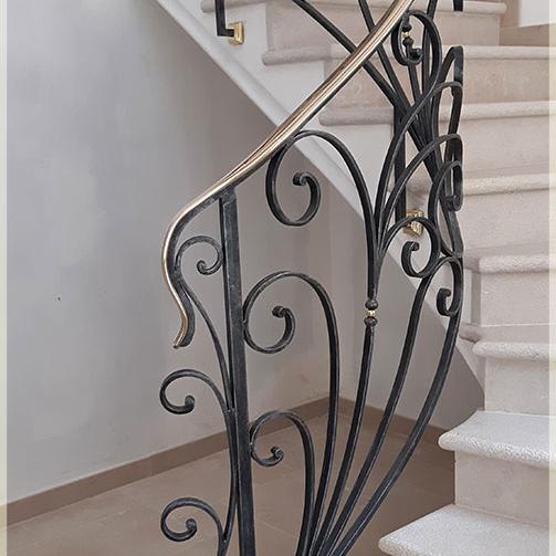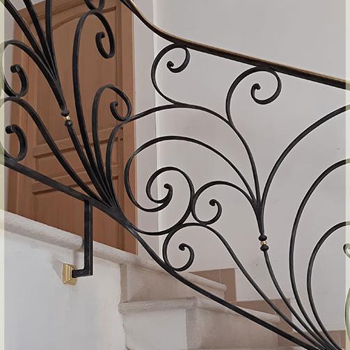 - Rampe toute en volutes en plat de 20 x 8 mm.