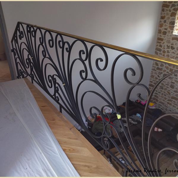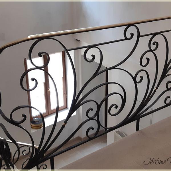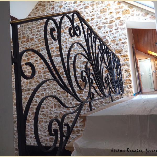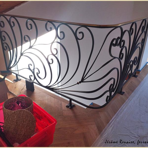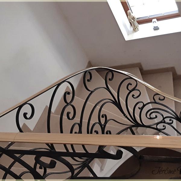 Cette rampe d'escalier assez récente peut être réalisée par Jérôme Renaire, RJ Ferronnerie, partout en France.