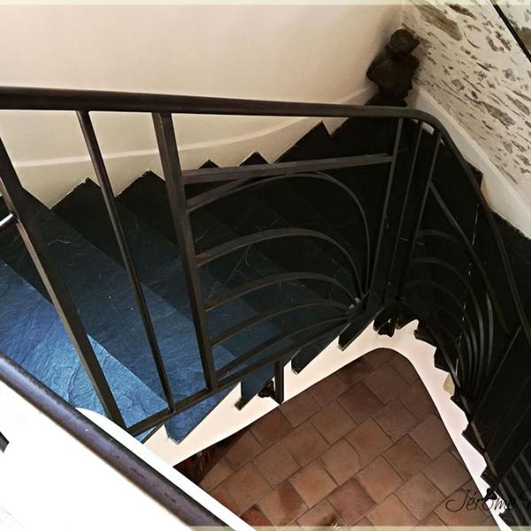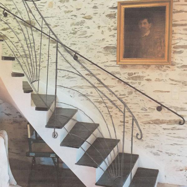 Rampe sur escalier en voûte sarrazine avec marches en ardoise (modèle 16) :